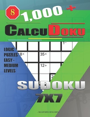 Positive brain awesome game. Suitable for adults and children. 6 puzzles per page. 500 CalcuDoku sudoku puzzles 7x7 easy levels. 502 CalcuDoku sudoku puzzles 7x7 medium levels. Thick paper. Glossy cover. Calcudoku sudoku puzzles - is a mathematical and logical puzzle. It is necessary to fill the grid with numbers so that in each row and in each column they are not repeated. The number in the corner of each selected block is the result of an arithmetic operation on the numbers in this block ( addition, subtraction, multiplication, division). Unlike killer sudoku (sum-do-ku), the numbers inside the block can be repeated. I hope you enjoy these puzzles. Best regards, Basford Holmes