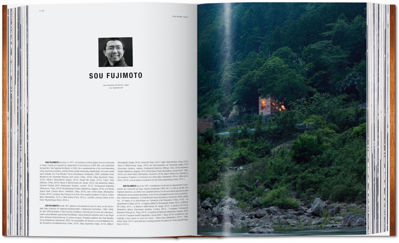 Ganz in der Tradition der TASCHEN-Architekturreihe präsentiert dieses Buch junge internationale Talente neben etablierten Altmeistern der Zunft wie Tadao Ando oder Renzo Piano. Es gewährt einen Einblick in die Techniken, Trends und Prinzipien, die ihre Arbeit mit Holz prägen. Dabei geht es ebenso um den computergestützten Holzzuschnitt, der vollkommen neue Formen ermöglicht, wie um verantwortungsvolle, umweltgerechte Forstwirtschaft - und auch um den anhaltenden Charme von Holz, der unsere Sinne und unseren Geist anspricht und uns in der Hektik des modernen Lebens mit idyllischer Schönheit und Einfachheit Ruhe schenkt.