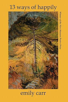 WINNER OF THE NEW MEASURE POETRY PRIZE "If ostranenie-to make strange-is the mandate of contemporary poetry, EMILY CARR has achieved this both brilliantly and beautifully. Kaleidoscopic in its glimmering slivers, the life she brings us is built of charged familiars slightly and completely changed: the sun turns on its stem; the stallion rolls in a pasture of blue ether. Although she references poetic antecedents from Wallace Stevens and William Carlos Williams to Joan Retallack and Mary Ruefle, it's not their voices, but their facility for invention, itself here reinvented, that keeps waking us up into a world sometimes alarming, often unsettling, and always careening until we, too, arrive 'delirious & shredded, sailing sideways through the greenly ravished vowels.'"-COLE SWENSEN "The poems of Emily Carr's 13 WAYS OF HAPPILY are like the butterflies of which she writes, "all-mond & a-mind white an ecstasy of crystalline palimpsest" sprouting "wings in the mind." They waver across imagination's field, alight on detail or insight, "flimmer on the dream's / cobweb." God and angels in wry company with the "plush octopus," the particular songbird, the Pepsi ad. Carr is alert to the environmental "surround," her poems delicate fronds of the observable world as it touches upon the window of inner plane. One reads a Carr poem first in wonder, for each poem is a tensile condensation that startles then dazzles. One returns, though, to ponder the profound stillness at the heart of 13 WAYS OF HAPPILY." -CYNTHIA HOGUE "What I find most appealing is that this book seems a living sensibility, as if I can feel its vibrancy in my hands. It has the intellectual curiosity and linguistic verve that power so much current poetry, but without any cynical disdain for traditional lyricism and figurative language. In fact, its fractured, episodic nature seems to push metaphor toward fresh ways of honoring both the microcosmic and the metaphysical, toward places where "phytoplankton in a raindrop echo" and "love . . . is a sail at the end of the world." The overall effect is expansive and exotic-a "mirage of buoyant polyglot" that remains grounded in immediate sensory and emotive experience, yet channels and extends that experience throughout even the most self-conscious formal innovation. There is a brilliant mind at work here, and an open heart-and the result is strangely beautiful."-MARK COX EMILY CARR'S first book, DIRECTIONS FOR FLYING (Furniture Press), was the winner of the 2009 FURNITURE PRESS POETRY PRIZE. Her chapbook, THE STORY WILL FIX YOU IT IS THERE OUTSIDE YOUR &, was published in Toadlily Press's 2009 Quartet Series. In 2010, Emily was a Poetry Fellow at the Vermont Studio Center & Writer in Residence at the Jack Kerouac House. You can read her work in recent issues of PRAIRIE SCHOONER, THE SPOON RIVER POETRY REVIEW, HAYDEN'S FERRY REVIEW, THE JOURNAL, BOMBAY GIN, MARGIE, INTERIM, CAKETRAIN, PHOEBE, FOURTEEN HILLS, THE CAPILANO REVIEW, SO TO SPEAK, DUSIE, and VERSAL.