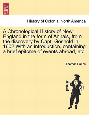 Title: A Chronological History of New England in the form of Annals, ... from the discovery by Capt. Gosnold in 1602 ... With an introduction, containing a brief epitome of ... events abroad, etc.Publisher: British Library, Historical Print EditionsThe British Library is the national library of the United Kingdom. It is one of the world's largest research libraries holding over 150 million items in all known languages and formats: books, journals, newspapers, sound recordings, patents, maps, stamps, prints and much more. Its collections include around 14 million books, along with substantial additional collections of manuscripts and historical items dating back as far as 300 BC.The HISTORY OF COLONIAL NORTH AMERICA collection includes books from the British Library digitised by Microsoft. This collection refers to the European settlements in North America through independence, with emphasis on the history of the thirteen colonies of Britain. Attention is paid to the histories of Jamestown and the early colonial interactions with Native Americans. The contextual framework of this collection highlights 16th century English, Scottish, French, Spanish, and Dutch expansion. ++++The below data was compiled from various identification fields in the bibliographic record of this title. This data is provided as an additional tool in helping to insure edition identification: ++++ British Library Prince, Thomas; 1826. 8 . 1447.k.16.