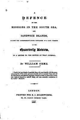 A Defense of the Missions in the South Sea and Sandwich Islands by William Orme. This book is a reproduction of the original book published in 1827 and may have some imperfections such as marks or hand-written notes.