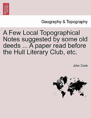 Title: A Few Local Topographical Notes suggested by some old deeds ... A paper read before the Hull Literary Club, etc.Publisher: British Library, Historical Print EditionsThe British Library is the national library of the United Kingdom. It is one of the world's largest research libraries holding over 150 million items in all known languages and formats: books, journals, newspapers, sound recordings, patents, maps, stamps, prints and much more. Its collections include around 14 million books, along with substantial additional collections of manuscripts and historical items dating back as far as 300 BC.The GEOGRAPHY & TOPOGRAPHY collection includes books from the British Library digitised by Microsoft. Offering some insights into the study and mapping of the natural world, this collection includes texts on Babylon, the geographies of China, and the medieval Islamic world. Also included are regional geographies and volumes on environmental determinism, topographical analyses of England, China, ancient Jerusalem, and significant tracts of North America. ++++The below data was compiled from various identification fields in the bibliographic record of this title. This data is provided as an additional tool in helping to insure edition identification: ++++ British Library Cook, John; 1880. 8 p.; 8 . 10358.bbb.66.(2.)