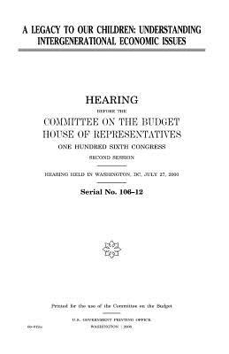 A legacy to our children: understanding intergenerational economic issues: hearing before the Committee on the Budget, House of Representatives, One Hundred Sixth Congress, second session, hearing held in Washington, DC, July 27, 2000.