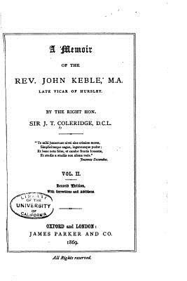 A Memoir of the Rev. John Keble - Vol. II by J. T. Coleridge. This book is a reproduction of the original book published in 1869 and may have some imperfections such as marks or hand-written notes.