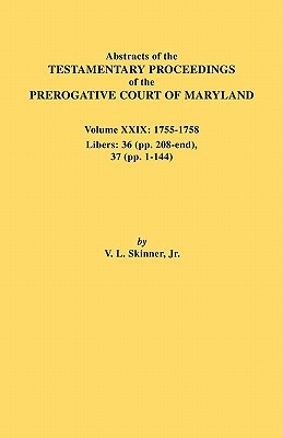 Volume XXIX in this distinguished series of Prerogative Court records compiled by Vernon Skinner consists of testamentary abstracts for the balance of 1755 and 1756-58. In all, Volume XXIX refers to an additional 7,000 colonial inhabitants of the Province of Maryland. For the most part, the transcriptions state the names of the principals (testators, heirs, guardians, witnesses, administrators, and so forth), as well as details of bequests, names of slaves, appraisers, and more.