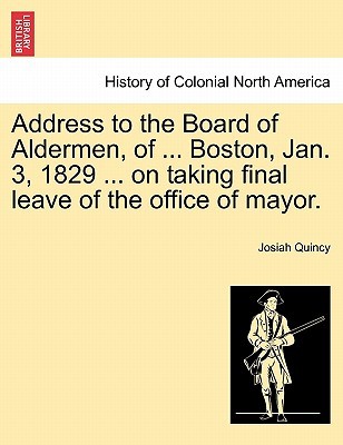 Title: Address to the Board of Aldermen, of ... Boston, Jan. 3, 1829 ... on taking final leave of the office of mayor.Publisher: British Library, Historical Print EditionsThe British Library is the national library of the United Kingdom. It is one of the world's largest research libraries holding over 150 million items in all known languages and formats: books, journals, newspapers, sound recordings, patents, maps, stamps, prints and much more. Its collections include around 14 million books,…