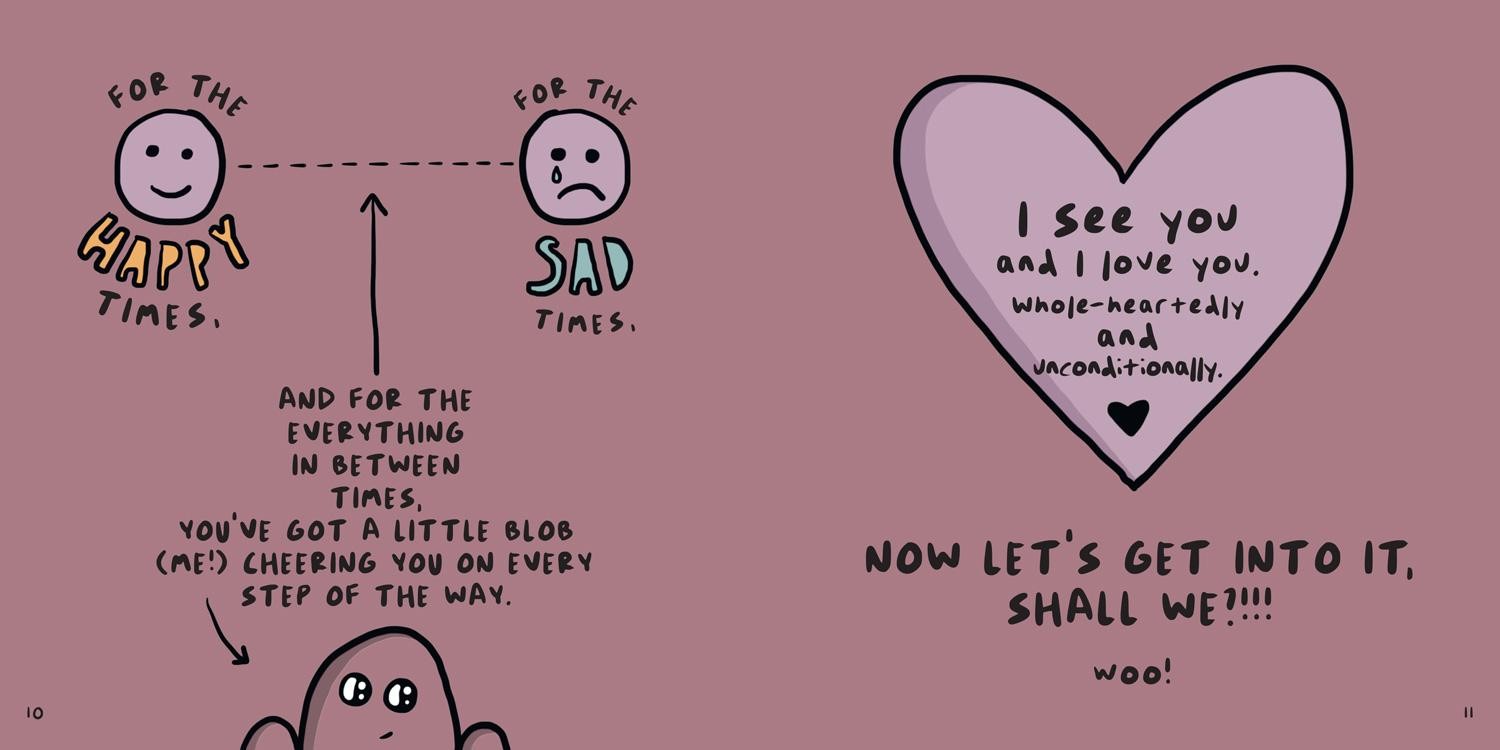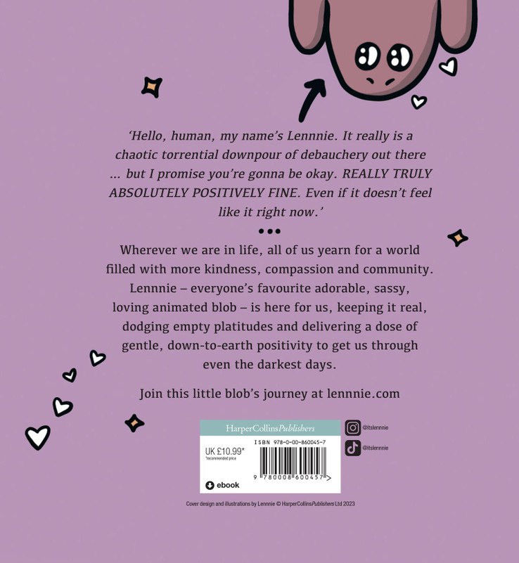 Hello humans, my name’s Lennnie, I’m a little blob that was sent by the book Gods to come check on you. So, let’s get into it shall we? Hello, human, my name’s Lennnie. It really is a chaotic torrential downpour of debauchery out there… but I promise you’re gonna be okay. REALLY TRULY ABSOLUTELY POSITIVELY FINE. Even if it doesn’t feel like it right now. Wherever we are in life, all of us yearn for a world filled with more kindness, compassion and community. Lennnie – everyone’s favourite adorable, sassy, loving animated blob – is here for us, keeping it real, dodging empty platitudes and delivering a dose of gentle, down-to-earth positivity to get us through even the darkest days.