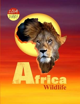 Africa wildlife lion and African map silhouette graphic design on the cover of 2019 weekly diary/planner; ideal gift for lovers of nature and animals