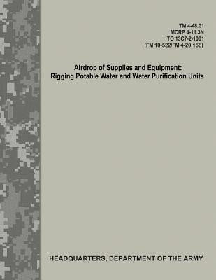 "Airdrop of Supplies and Equipment: Rigging Potable Water and Water Purification Units," (TM 4-48.01/MCRP 4-11.3N/TO 13C7-2-1001[FM 10-522/FM 4-20.158]), provides doctrinal guidance and direction for United States Army, United States Marine Corps, and United States Air Force units conducting aerial delivery operations. This manual provides information on how to rig configurations of the following: 55-gallon and 250-gallon collapsible water drums, 600-gallons per hour Reverse Osmosis Water Purification Unit (ROWPU), and the Lightweight Water Purifier (LWP). These loads are rigged for low-velocity airdrop from a C-130 or C-17 aircraft. The principal audience for TM 4-48.01/MCRP 4-11.3N/TO 13C7-2-1001 is all members of the profession of arms. Commanders and staffs of Army, Marine Corps, and Air Force headquarters serving as joint task force or multinational headquarters should also refer to applicable joint or multinational doctrine concerning the range of military operations and joint or multinational forces. Trainers and educators throughout the Army, Marine Corps, and Air Force will also use this publication.