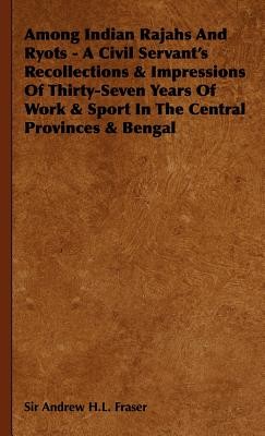 AMONG INDIAN RAJAHS AND RYOTS A Civil Servant's Recollections amp Impressions Of Thirty-Seven Years Of Work amp Sport In The Central Provinces amp Bengal By Sir Andrew H.L.Fraser. CONTENTS: EARLY DAYS EUROPEAN OFFICERS OF MY PROVINCE MORE ABOUT CENTRAL PROVINCES OFFICERS INDIAN OFFICER OR MY PROVINCE JUDICIAL AND EXECUTIVE FUNCTIONS OF OUR OFFICERS SOME INDIAN FRIENDS THE INDIAN PEOPLES INDIAN LADIES GRAIN RIOTS IN THE NAGPUH DISTRICT THE KHOND RISING IN THE KALAHANDI STATE THE FEUDATORY STATES OF PHRISTMAS WITH WILD ELEPHANTE WITH TIGERS AND BIG GAME THE AGRICULTURAL COMMUNITY THE FINANCING OF AGRICULTURE LOCAL INQUIRIES EDUCATION . . CHRISTIAN MISSIONS INDIAN UNREST: ITS CAUSES INDIAN UNREST: ITS LIMITATIONS MEASURES OF REPRESSION AND REFORM THE AMBER OF AFGHANISTAN THE HUMOURS OF ADMINISTRATION THE LAST INDEX LIST OF ILLUSTRATIONS: THE BARDWAN FAMILY A RAJAH ON HIS JOURNEY RAJAH KANHAYA LALL THE LATE FEUDATORY CHIEF OF CHHUIKHAUAN A BODYGUARD OF BOYS A GRAVEYARD OF THE ABORIGINES, CHOTA NAGPUR A GROUP TAKEN ON TOUR AMONG THE CHIEFS OF ORISSA A DARBAR A PROCESSION OF ELEPHANTS AWAITING THEIREIDERS MT CAMP AS DISTRICT OFFICER AWAITING THE TIGER RAJA SULAIMAN SHAH AND HIS TROPHY FISHING-BOATS IN THE SUNDBRBANS A GROUP OF BAIOAS IN BALAOHAT THE SACRED OLD TOWN *» NAWADWIP WAITING AT THE FERRY