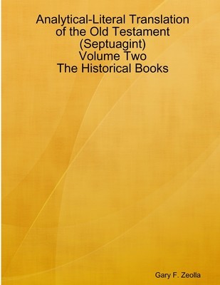 The Analytical-Literal Translation of the Old Testament (Septuagint): Volume II: The Historical Books (ALT) is a companion to the Analytical-Literal Translation of the New Testament. Both are translated by Gary F. Zeolla (www.Zeolla.org). The ALT: Old Testament is being published in five volumes. Most Old Testaments are based on the Hebrew text. But this Old Testament (OT) is based on the Greek Septuagint (LXX). The LXX is a third century B.C. Greek translation of the Hebrew Bible. The name and abbreviation comes from the tradition that 70 (or 72) Jewish scholars worked on its translation, six from each of the 12 tribes of Israel. The importance of the LXX is that it was THE Bible of the early Church. The purpose of the ALT is to provide a translation of the Greek Septuagint that will enable the reader to come as close to the Greek text as possible without having to be proficient in Greek.