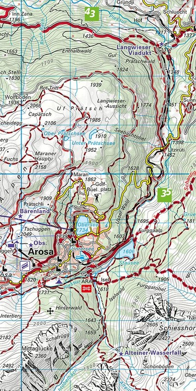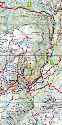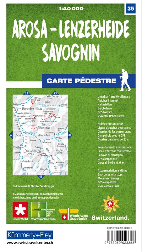 Mit nützlichen Informationen wie: Unterkunft und Verpflegung, Autobuslinien mit Haltestellen, Bergbahnen. GPS tauglich, 25 Meter Höhenkurven.