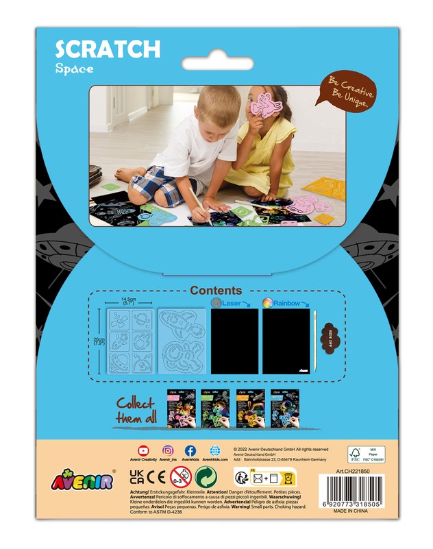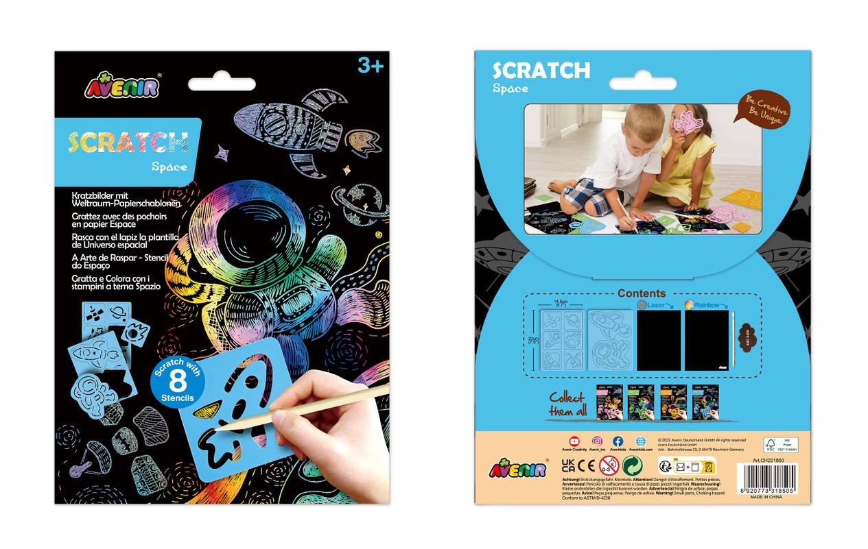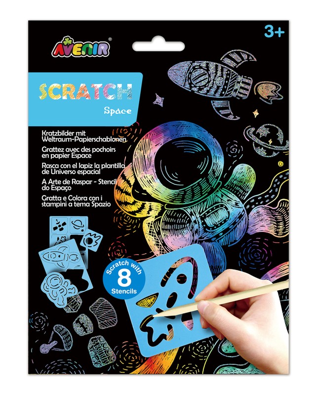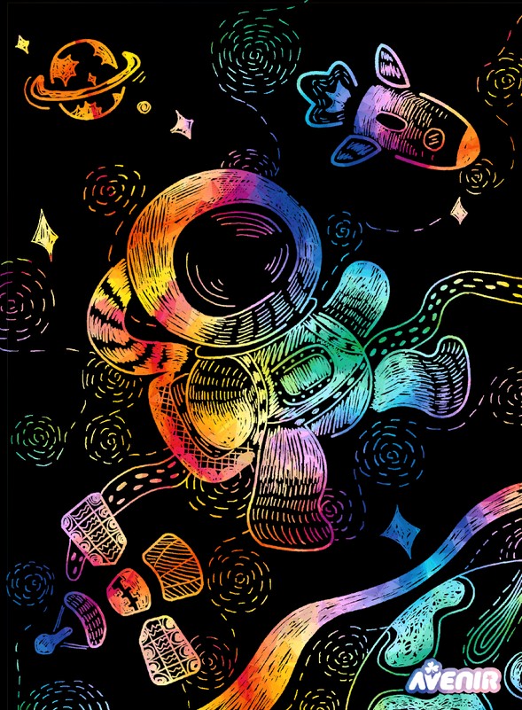 AVENIR skrāpējumu komplekts ļaus jūsu bērnam justies kā īstam māksliniekam! Katrs zīmuļa triepiens noņem melno krāsas slāni un atklāj krāsainu attēlu. Ieteicamais vecums: 3+. Šī komplekta īpašā iezīme ir unikālā apgleznošanas tehnika, kas tiek veidota, skrāpējot kontūru uz aptumšota fona.