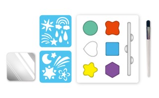 Sejas apgleznošana ir lielisks veids, kā bērni var radīt jautrus un svinīgus tēlus! Šajā viegli lietojamajā komplektā ir 6 sejas krāsas, 2 atkārtoti lietojami trafareti, otiņa,nodrošinot bērniem visu nepieciešamo, lai izpaustu radošumu.