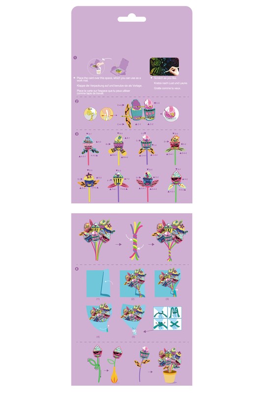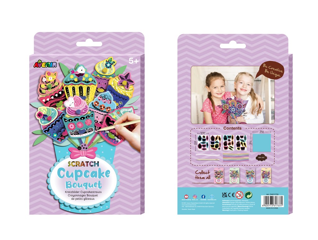 Pārsteidzošā un spilgtā Avenir skrāpējumu māksla būs lieliska izklaide mazajiem. Avenir skrāpējamie attēli nav tikai skrāpējami attēli, tie sniedz bērniem iespēju pagatavot kaut ko pašu rokām un ir lieliska izklaide. Noskrāpējiet no īpaša papīra kēksiņu formā izgatavotās detaļas, ietiniet tās komplektā iekļautajā papīrā un izveidojiet skaistu pušķi.