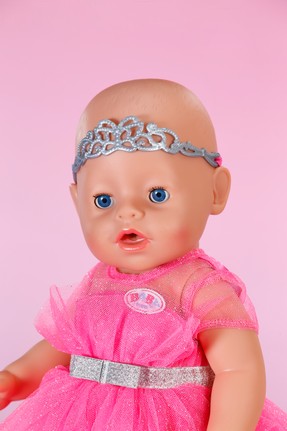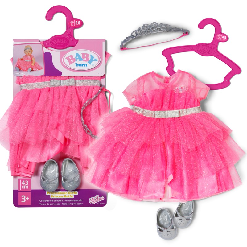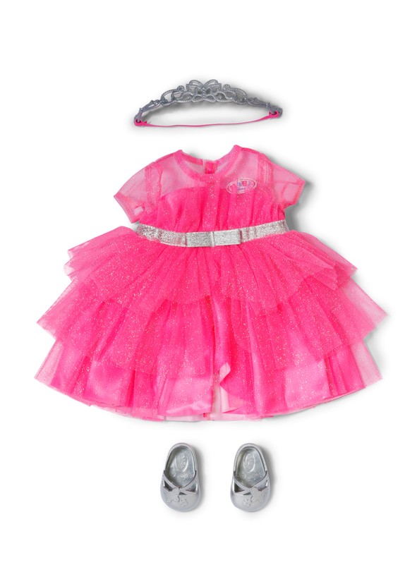 Eleganta princeses kleita – rozā tilla sapnis ar spīdīgu sudraba jostiņu. Papildiniet komplektu: diadēma un elegants, sudraba krāsas kurpju pāris.