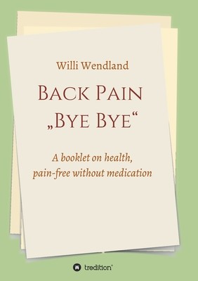 Back pain "Bye Bye" A small book on healthy, painless without medication Back pain "Bye Bye" This little book can help you to become or stay pain-free. Everyone has back pain, but nobody tells you how to help yourself. The two exercises will change your life. Applied daily, they help you to become or stay pain-free. My family and I have been healthy and free of pain for several years through these two exercises that we do several times a day. Willi Wendland wishes you every success!