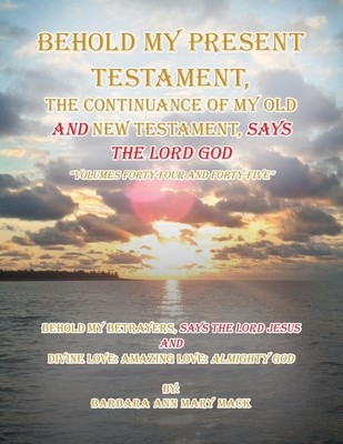 BEHOLD MY PRESENT TESTAMENT VOLUMES FORTY-FOUR AND FORTY FIVE CONSISTS OF A SPIRITUAL DIALOGUE BETWEEN ALMIGHTY GOD, THE FATHER, CHRIST JESUS, HIS ONLY BEGOTTEN SON, EARTH'S INHABITANTS, AND BARBARA ANN MARY MACK, GOD'S SENT MODERN DAY MESSENGER AND PROPHETESS. THIS BOOK IS WRITTEN IN THE FORM OF POETRY, WHICH MAKES IT EASY FOR THE READER TO FOLLOW AND SPIRITUALLY GRASP. BEHOLD MY PRESENT TESTAMENT CONSISTS OF CURRENT SAYINGS OF GOD, THE FATHER, AND CHRIST JESUS.