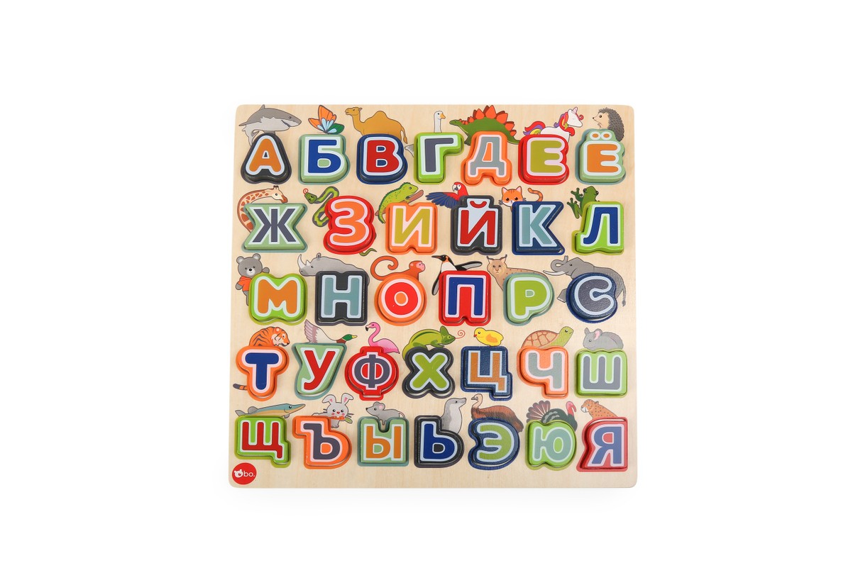 bo. izglītojošā puzle "ALFABĒTS UN DZĪVNIEKI" iepazīstina bērnu ar burtu un dzīvnieku pasauli, māca krievu alfabētu, attīsta spēju sasaistīt burtus ar dzīvnieku attēliem. Šī puzle ir lielisks pirmais solis, lai iemācītos lasīt.