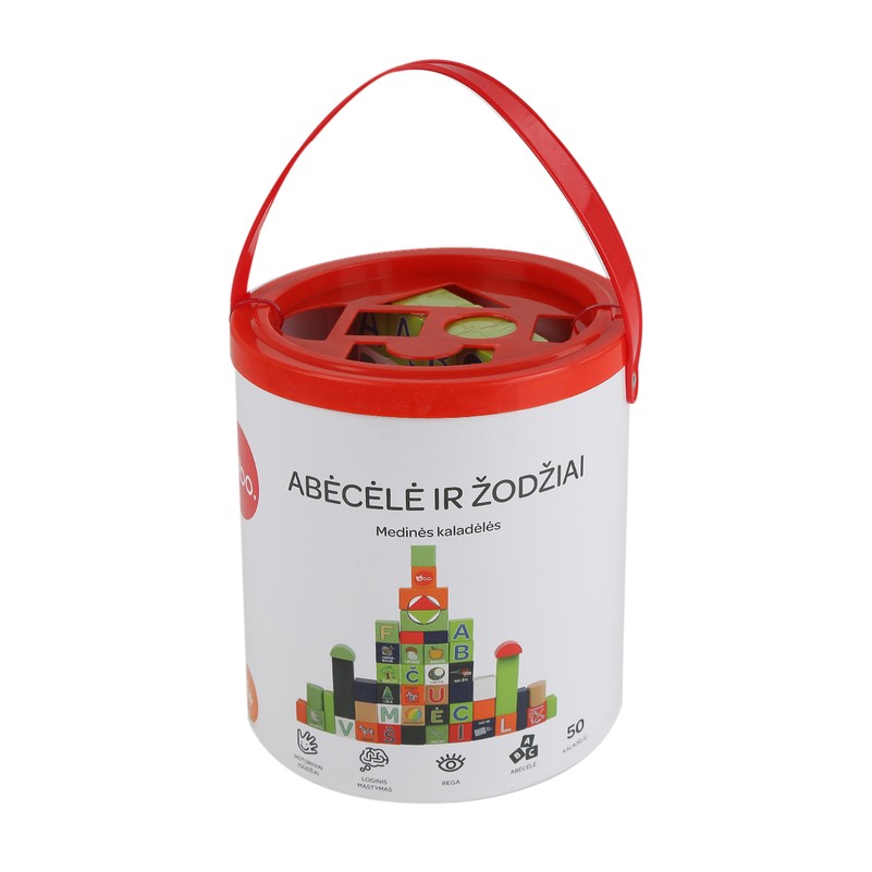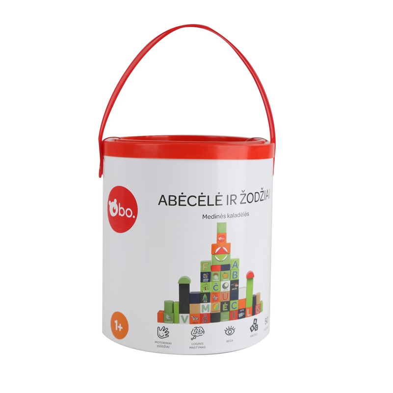 Mokomasis bo. medinių kaladėlių rinkinys „Abėcėlė ir žodžiai“ supažindina vaiką su raidžių ir žodžių pasauliu, moko lietuvių kalbos abėcėlės, ugdo gebėjimą susieti raides su paveikslėliais. bo. rinkinys – puikus pirmasis žingsnis mokantis skaityti. Rinkinyje esančios kaladėlės yra dvipusės – ant vienos jų pusės pavaizduotos raidės, ant kitos – žodžiai, todėl mokytis dar smagiau!