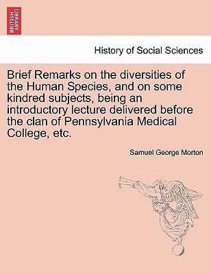 Title: Brief Remarks on the diversities of the Human Species, and on some kindred subjects, being an introductory lecture delivered before the clan of Pennsylvania Medical College, etc.Publisher: British Library, Historical Print EditionsThe British Library is the national library of the United Kingdom. It is one of the world's largest research libraries holding over 150 million items in all known languages and formats: books, journals, newspapers, sound recordings, patents, maps, stamps, prints and much more. Its collections include around 14 million books, along with substantial additional collections of manuscripts and historical items dating back as far as 300 BC.The HISTORY OF SOCIAL SCIENCES collection includes books from the British Library digitised by Microsoft. This collection provides histories and analyses of society, culture, education, crime, and family life. Providing a unique perspective of everyday life in the 18th and 19th centuries, readers of these works can study earlier developments that formed our modern society.++++The below data was compiled from various identification fields in the bibliographic record of this title. This data is provided as an additional tool in helping to insure edition identification: ++++ British Library Morton, Samuel George; 1842. 8 . 10006.cc.50.