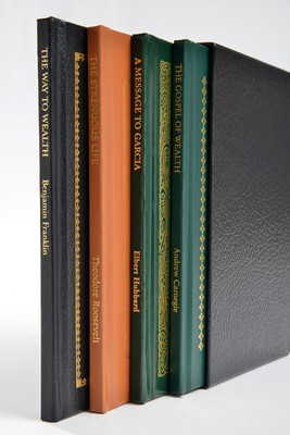 Four hardcover Books of American Wisdom selected specifically for business leaders. Priceless knowledge for only $40.00, presented in a handsome slipcase. Box Set includes: Way to Wealth - One of the most important money books ever published, written by Benjamin Franklin. The Strenuous Life - Theodore Roosevelt tells how to live life to its most productive and fullest. A Message to Garcia - Elbert Hubbard's timeless and provocative management advice. Gospel of Wealth - Carnegie's classic essay about using individual wealth for the good of society.