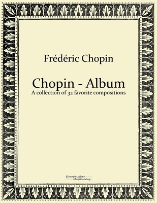 This fantastic Chopin - Album is an unchanged reprint of the collection of 32 most favorite compositions of the great composer Frédéric Chopin. Included are: 7 Waltzes (Op. 18, Op. 34 Nr. 1 + 2, Op. 42, Op. 64 Nr. 1 + 2, Posthumous, E-minor) 5 Mazurka (Op. 7 Nr. 1 + 2, Op. 33 Nr. 1,3 + 4) 2 Polonaise (Op. 40, Op. 26) 7 Nocturne (Op. 9, Op 15 Nr. 2 + 3, Op. 27, Op. 32, Op. 37 Nr. 1 + 2) 2 Ballades (Op. 47, Op. 23) Impromptu Op. 29 3 Studies (Op. 25 Nr. 1, 7, 9) Prelude Op. 28 Scherzo Op. 31 Fantasy - Impromptu Op. 66 Berceuse (Lullaby) Op. 57 Funeral March Op. 35 A great work for piano, which pianists will enjoy playing for long time.