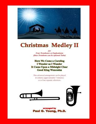 Christmas Medley II is part of a five-volume collection of sacred carols. The compilation of includes: Here We Come a CarolingI Wonder As I WanderIt Came Upon a Midnight ClearGood King WenceslasThe arrangement, for trombone quartet, contains both a score and individual parts which may be photocopied for rehearsal and performance purposes. The parts could be doubled or expanded to any size trombone choir. Euphoniums (baritone horns) and tuba can also be utilized. The arrangements are designed for advanced players. The four carols can be programmed and performed in entirety (approximately 7 minutes) or as separate selections. This collection, as well as the other carols in the Christmas Medley series, will be appreciated by audiences everywhere.