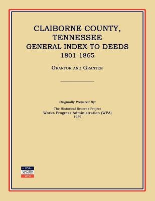 During the Depression, the Works Progress Administration (WPA), Transcriptions Unit, prepared an index for all of Clairborne County, Tennessee Deeds, for the years 1801 to 1865. This book contains the original index. Information in this work includes the names of Grantor and Grantee, Date, Deed Book Number, Page, and Consideration for the transaction. The listings are not in strict alphabetical order, but instead all entries for each letter are listed together. The first section of the book is an alphabetical listing by Grantor; the second section contains the alphabetical listing by Grantee. There are more than 14,000 individuals listed in this index. Paperback, (1939), repr. 2007, 2012, Index, 333 pp.