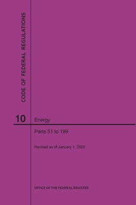 Title 10-ENERGY is composed of four volumes. The parts in these volumes are arranged in the following order: Parts 1-50, 51-199, 200-499 and part 500-end. The first and second volumes containing parts 1-199 are comprised of chapter I-Nuclear Regulatory Commission. The third and fourth volumes containing part 200- end are comprised of chapters II, III and X-Department of Energy, chapter XIII-Nuclear Waste Technical Review Board, chapter XVII-Defense Nuclear Facilities Safety Board, and chapter XVIII-Northeast Interstate Low-Level Radioactive Waste Commission. The contents of these volumes represent all current regulations codified under this title of the CFR as of January 1, 2020.