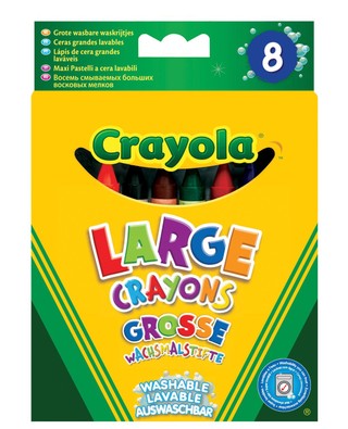 Krītiņi 8 gb. Šie krītiņi nodrošina vienmērīgu krāsu uzklāšanu bez svītrām. Šie krītiņi nomazgājas no auduma, ādas un virsmām. Turklāt krītiņi ir dubultā iepakojumā, kas nodrošina papildu izturību un stundām ilgu radošu izklaidi. Paredzēts vecumam no 3 gadiem.