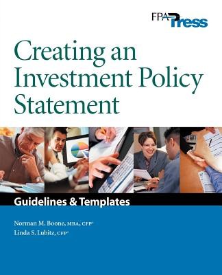 What is an Investment Policy Statement? The IPS provides the foundation for all future investment decisions to be made by an investor.It serves as a guidepost, identifying goals, creating a system and discipline for a decisions. A client said,"Once the trustees adopted the Investment Policy Statement, we found that we were making our decisions in a deliberate fashion, rather than in the "heat of battle."Since we'd already thought about how things would get done under a variety of circumstances, we no longer found ourselves getting emotional. Planning ahead makes it easier for all of us when the investment markets get turbulent." If you are an investment advisor, financial planner, stock broker, insurance agent, CPA or attorney advising your clients about their money, this innovative book will be a key tool for working with clients.