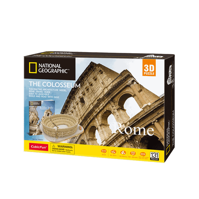 Everyone loves to put together puzzles, it´s both fun and educational. Puzzles are perfect for completing solo or in a group. CubicFun 3D puzzle National Geographic Colosseum. The model kit is made of paper and EPS foam board and packed with easy-to-follow assembly instructions. All pieces interlock precisely, no tools & glue needed. The kit includes a brochure with eye-catching photographs & history of the architecture. Completed puzzle size: 34,3 x 25,7 x 9 cm. The Colosseum, is an oval amphitheatre in the centre of the city of Rome, Italy, just east of the Roman Forum and is the largest ancient amphitheatre ever built, and is still the largest standing amphitheater in the world today, despite its age. Construction began under the emperor Vespasian in 72 and was completed in AD 80 under his successor and heir, Titus. Further modifications were made during the reign of Domitian. The three emperors that were patrons of the work are known as the Flavian dynasty, and the amphitheatre was named the Flavian Amphitheatre by later classicists and archaeologists for its association with their family name.