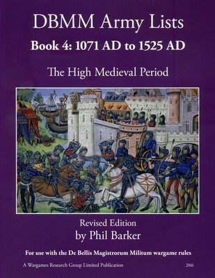 DBMM Army Lists Book 4. The High medieval Period. 1071 AD to 1525 AD This is the final volume in a series of WRG publications providing detailed guidance on the structure and organisation of ancient and medieval armies for use with the DBMM wargame rules.