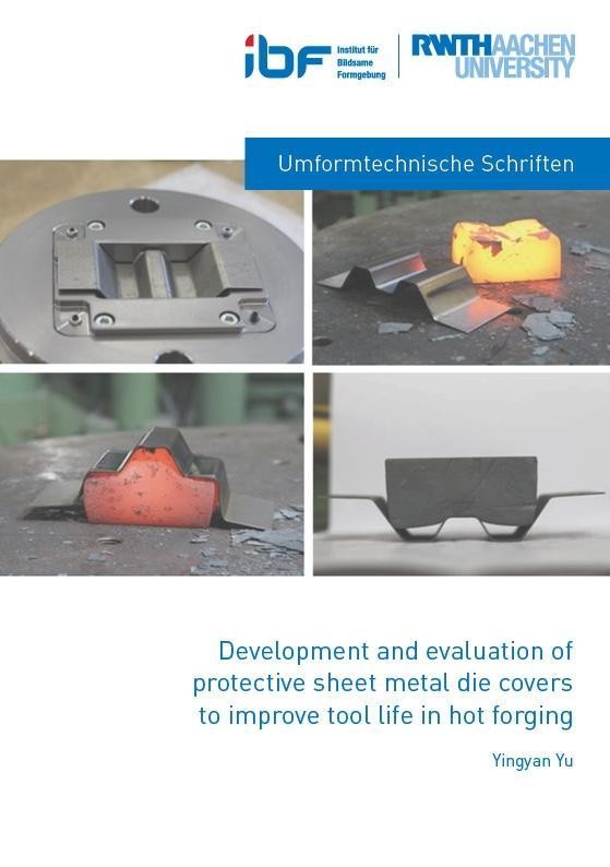 The economic success of a hot closed-die forging process is highly dependent on the tooling costs, which account for up to 17-50% of the total price of forged parts. Improving the service life of forging dies is the most efficient way to reduce tooling costs. Since the degradation of the properties of forging dies occurs mainly at their surface layer, the most commonly used current method for prolonging tool life is to modify the material properties of the die surface by a surface treatment or coating such as nitriding, PVD (Physical Vapor Deposition), CVD (Chemical Vapor Deposition), and duplex technology. These approaches can improve the hardness and thus the wear resistance of the die surface by producing protective material layers on it. However, these layers usually have a strong bond with the forging die, which impedes its removal after degradation. Therefore, the exchange of the whole forging die is necessary after the protective layer is worn away. As a result, the pace of production decreases, and total costs increase. In the search for a method that could reduce both tooling costs and repair time, a new concept, "protective sheet-metal die covers," was investigated. This concept proposes to develop an inexpensive and exchangeable sheet metal part for protecting forging dies from wear. The idea behind the proposed concept is to replace the die surface by a sheet metal part called a die cover. This cover protects the die from thermal and mechanical loads during forging cycles and can be easily exchanged after wearing out. Experimental studies of the die cover concept proved that the temperature of the die surface can be decreased by applying the die cover. However, these studies all faced the same problem: each die cover deformed and bonded with the billet after the first forging stroke. This work aims to evaluate the feasibility and protective effects of die covers and to develop the die cover concept into a feasible, effective, and cost-effective solution for prolonging the tool life of hot forging dies. The feasibility of the die cover concept was evaluated by identifying feasible cases. First, a simulation model was built based on the data gathered from the previous experiments to represent the deformation of die covers during forging. Numerical analysis indicated that the deformation of the die cover was a result of compressive forces produced by the movement of the contact regions. Friction conditions, geometrical features, and material selection were the main factors influencing the deformation of the die cover. Based on this analysis, another set of simulations were conducted to explore the influences of each factor individually. Results showed that the compressive stress within the die cover increased with the increase of the friction coefficients between the billet and the die cover, while it decreased with the increase of the friction coefficient between the die cover and the forging die. Therefore, in order to prevent the deformation of the die cover, it is better to achieve a friction condition with a small friction coefficient between billet and die cover and a large friction coefficient between die cover and forging die. Looking at the geometrical features, geometries with a greater face angle, shallower die depth, and less contact length between billet and die cover tended to result in less folding and are therefore more suitable for applying die covers. For the material selection of die covers, different types of material were analyzed according to the requirements of die cover material. Three of the discussed materials, DC04, HS6-5-2, and 22MnB5, were tested via experiments. The material 22MnB5 was proven to be the most promising material for die covers among the three evaluated materials. In the end, two cases were designed when considering all of the influences mentioned above. Experimental results validated the analysis of the effects of geometrical features and die cover materials. The service life of the die covers in these two cases reaches 3 forging cycles and 7 forging cycles, respectively. These two cases proved that the die cover could be applied in forging more than one forging cycle. However, the short service life of die cover was still the main limitation of the die cover concept.