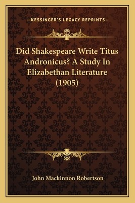 Did Shakespeare Write Titus Andronicus? a Study in Elizabethan Literature (1905) (e-book) (used book) | bookbook.eu