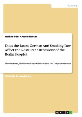 Research Paper (undergraduate) from the year 2008 in the subject Business economics - Economic Policy, grade: 1,0, University of Applied Sciences Berlin, course: Research Methods, language: English, abstract: On the 1st of January 2008, the latest anti-smoking law was introduced in eight German states - and Berlin was one of them. Lower Saxony, Baden-Württemberg and Hessen have introduced this law already in 2007 whereas the remaining five states will follow over this year. By restricting indoor smoking in public buildings, workplaces and in all restaurants and bars, the German government aims not only to protect non-smokers against the harmful effects of passive smoking but also to help smokers to give up. But from the economic point of view, especially the German restaurant industry complains that many businesses now witness lower profits and especially restaurants that are not in a position to have a separate smokers section are particularly hard hit. As a result, the latest smoking ban is still a heavily discussed topic, not only among German smokers but also among the whole German population. To get an impression whether this smoking ban really affects the restaurant behaviour, the authors of this assignment conducted a telephone survey among Berlin citizens. And the results are someway surprising. Chapter two clarifies the theoretical framework of developing and conducting telephone surveys by stating guidelines that have to be followed, describing the telephone survey process and mentioning general advantages and disadvantages of this primary research method. The main part of this assignment - chapter three - spotlights the whole research process on the basis of a practical example. Here, the telephone survey about the impact of the German anti-smoking law on the restaurant behaviour of the Berlin people is developed, conducted and evaluated. Finally, based on the own experiences of the authors, chapter four includes some errors that may occur within a telep