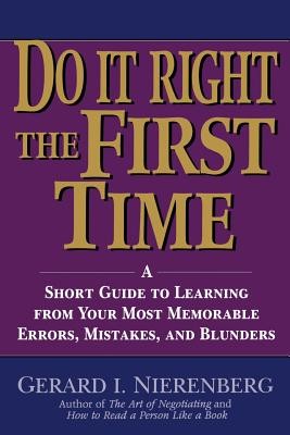 Your mistakes need not be a fact of life. We can all learn to makefewer of them. In Do It Right the First Time, world renownedpersonal improvement guru Gerard Nierenberg shows us just how wecan reduce the number of errors we make--both in and out of lifeand the workplace. Nierenberg's Error Awareness System teaches ushow to increase our sensitivity and cut down on the errors wemake--and guard against those made by others that affect us. Heshows us how to identify the causes of our errors, how to deal withthem--and most importantly--how to prevent them from recurring.Packed with real-life examples, discussion questions, checklists, and helpful exercises, Do It Right the First Time covers: