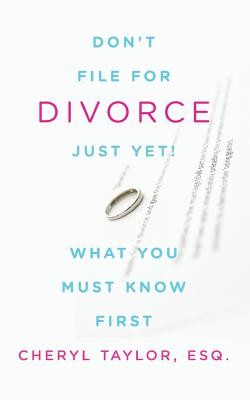 Divorce is a tug of war between the heart and soul of broken lovers; it can be a scary and lonely process deflating your hope and self-assuredness. As a former Federal litigator, Cheryl Taylor goes beyond the facts and figures, adding dimension to the topic of divorce through her own experience. Don't File for Divorce Just Yet, arms you with the knowledge, clarity and strength to make sound decisions about your future. "It's like having a friend sit down with you and go over the heart of the issues instead of just the facts that a lawyer throws down. She speaks to your doubts and fears, giving you hope to carry on." Simone Johanason "She's not a lawyer who's in it for the money. Cheryl walks you through the helpful and the emotional decisions that must be made. She helps you see clearer the decisions before you." Erica Cuffler "Cheryl speaks with love and with a heart for you to grow in the confidence of who you are as an individual so that you can make good decisions for yourself. No one can make these difficult choices for you, but Cheryl is by your side through it all. Don't you need someone in your corner? Page Reneau "Reading this book caused me to gain one thing I had lost... hope." Carissa Boudin