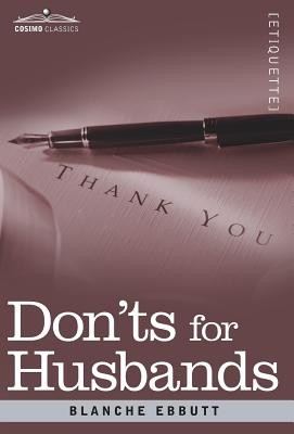 "Don't look at things solely from a man's point of view. Put yourself in your wife's place and see how you would like some of the things she has to put up with." Originally published in 1913, Don'ts for Husbands provides advice that's as equally compelling as its companion, Don'ts for Wives. In this comical, enlightening, and historical booklet, Blanche Ebbutt shifts sides of the marital equation, delivering advice-some of which still rings true today-to help shape a proper and successful husband. Offering tips on "General Habits," "Jealousy," "Food," and many more timeless topics, Don'ts for Husbands is the perfect gift for anyone interested in the evolution of society, and who ultimately loves to laugh. In addition to Don'ts for Wives, a third installment in this series, Don'ts for Mothers, is also available from Cosimo Classics. Little is known about BLANCHE EBBUTT other than the knowledge that she is the author of the witty, instructive 20th century etiquette guides Don'ts for Wives and Don'ts for Husbands. It is suspected that she was also the anonymous author of the earlier Don'ts for Mothers.