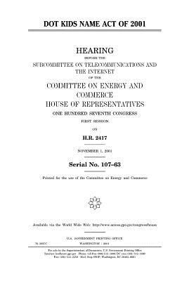 Dot Kids Name Act of 2001: hearing before the Subcommittee on Telecommunications and the Internet of the Committee on Energy and Commerce, House of Representatives, One Hundred Seventh Congress, first session on H.R. 2417, November 1, 2001.