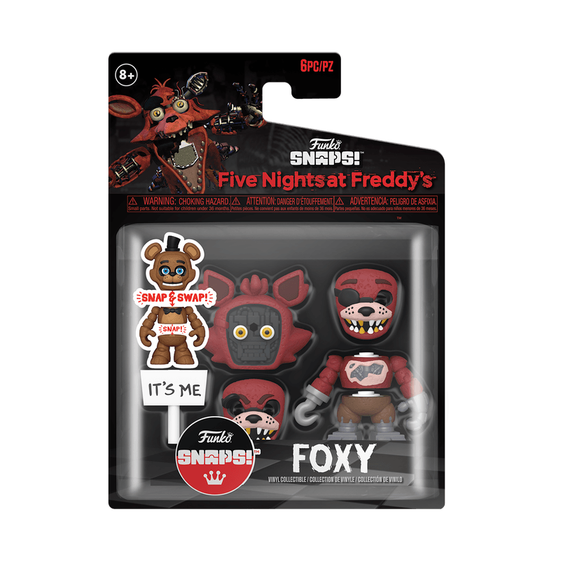 Pamēģiniet izdzīvot nakti Freddy Fazbear’s! SNAPS! figūriņai ir 6 dažādas detaļas, kas nofiksējas vietā, tostarp galva, 2 maināmas sejas, ķermenis, kājas un aksesuārs. Vinila kolekcionējamā figūriņa ir aptuveni 8,8 cm gara.