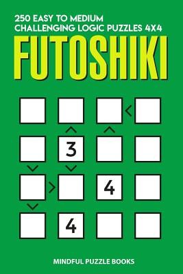 250 Easy to Medium Challenging Logic Puzzles 4x4.Futoshiki (from Japanese, literally "not equal"; also known as "Hutoshiki," "Unequal") is a logic puzzle. The puzzle is played on a square grid, such as 4 x 4. The objective is to place the numbers 1 to 4 (or whatever the dimensions are) in each row, ensuring that each column also only contains the digits 1 to 4. Some digits may be given at the start. In addition, inequality constraints are also initially specifed between some of the squares, such that one must be higher or lower than its neighbour. These constraints must be honoured as the grid is filled out.