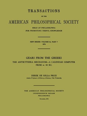 The first great discovery in underwater archaeology yielded not only a fine collection of art treasures but also the most enigmatic, most complicated piece of scientific machinery known from antiquity. This artifact is now identified as an astronomical or calendrical calculating device involving a very sophisticated arrangement of more than thirty gear-wheels.
