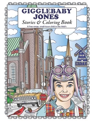 This coloring book was inspired by a beautiful Missouri river dream. A place rich in German-American history and community spirit. Washington; my hometown. The town in this book is "Verbena". Meet young Gigglebaby Jones, an imaginative mid-1960's child. She loves Elvis, and the annual fair. See Elvis making a personal appearance at the historic Calvin Theater. He is also spotted at a local night spot, the Top Hat Club. (Of course, Gigglebaby wasn't present at that party). Admire her Autumnal hat, with harvest goodies, and a corncob pipe atop it. Meet her older brother, and step into a beautiful 3-story furniture store. I hear they have a crazy elevator! And what is the hidden treasure at the V.F.W.? Join her adventures in 38 full-page illustrations and 12 pages of charming anecdotes. Don't be surprised if you end up helping her look for soda bottles everywhere. The stores pay 2 cents for each returned bottle. That kind of money adds up! And are those children attempting to cash in the empties at Sharp Corner Bar? Try Wimpy's instead.