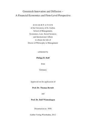 The world is going green. Sustainable technologies, such as renewable energy and electric vehicles, are increasingly becoming part of our daily life. This dissertation fills the ensuing gap by providing an insight into the emerging German greentech industry, one of the largest in the world. It develops an integrated and interdisciplinary theoretical framework in which to assess the relationships between innovation, growth and financing from a firm-level perspective; it then tests this framework empirically. In essence, the study finds that: (1) Innovative activity and corporate growth depend heavily on the availability of capital. At the same time, it appears that particularly innovative firms are more likely to face financial constraints. (2) A lack of funds is very apparent for around a quarter of the firms investigated and seems most severe in the early part of the growth state, where firms focus on commercializing existing products. (3) Government support programs only partially offset these effects