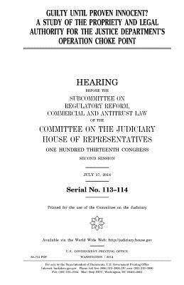 Guilty until proven innocent?: a study of the propriety and legal authority for the Justice Department's Operation Choke Point: hearing before the Subcommittee on Regulatory Reform, Commercial and Antitrust Law of the Committee on the Judiciary, House of Representatives, One Hundred Thirteenth Congress, second session, July 17, 2014.