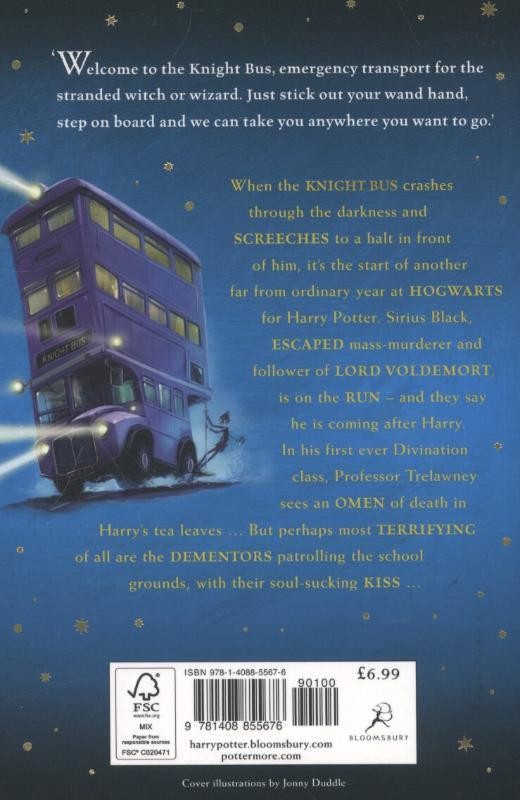 When the Knight Bus crashes through the darkness and screeches to a halt in front of him, it's the start of another far from ordinary year at Hogwarts for Harry Potter. Sirius Black, escaped mass-murderer and follower of Lord Voldemort, is on the run - and they say he is coming after Harry. In his first ever Divination class, Professor Trelawney sees an omen of death in Harry's tea leaves... But perhaps most terrifying of all are the Dementors patrolling the school grounds, with their soul-sucking kiss...