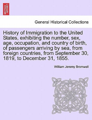 Title: History of Immigration to the United States, exhibiting the number, sex, age, occupation, and country of birth, of passengers arriving ... by sea, from foreign countries, from September 30, 1819, to December 31, 1855 ... With an introductory review of the progress and extent of immigration to the United States prior to 1819, etc.Publisher: British Library, Historical Print EditionsThe British Library is the national library of the United Kingdom. It is one of the world's largest research libraries holding over 150 million items in all known languages and formats: books, journals, newspapers, sound recordings, patents, maps, stamps, prints and much more. Its collections include around 14 million books, along with substantial additional collections of manuscripts and historical items dating back as far as 300 BC.The GENERAL HISTORICAL collection includes books from the British Library digitised by Microsoft. This varied collection includes material that gives readers a 19th century view of the world. Topics include health, education, economics, agriculture, environment, technology, culture, politics, labour and industry, mining, penal policy, and social order. ++++The below data was compiled from various identification fields in the bibliographic record of this title. This data is provided as an additional tool in helping to insure edition identification: ++++ British Library Bromwell, William Jeremy 1856 225 p.; 8 . 9604.c.10.