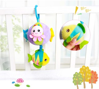 Sākt muzicēšanu. Zvaniet zivs zvaniņu. Komplektā ietilpst pīkstulis; pavelciet dzīvnieciņu, lai atskaņotu šūpuļdziesmu. 100 % poliesteris. Izmēri: 30 х 15 х 15 cm.